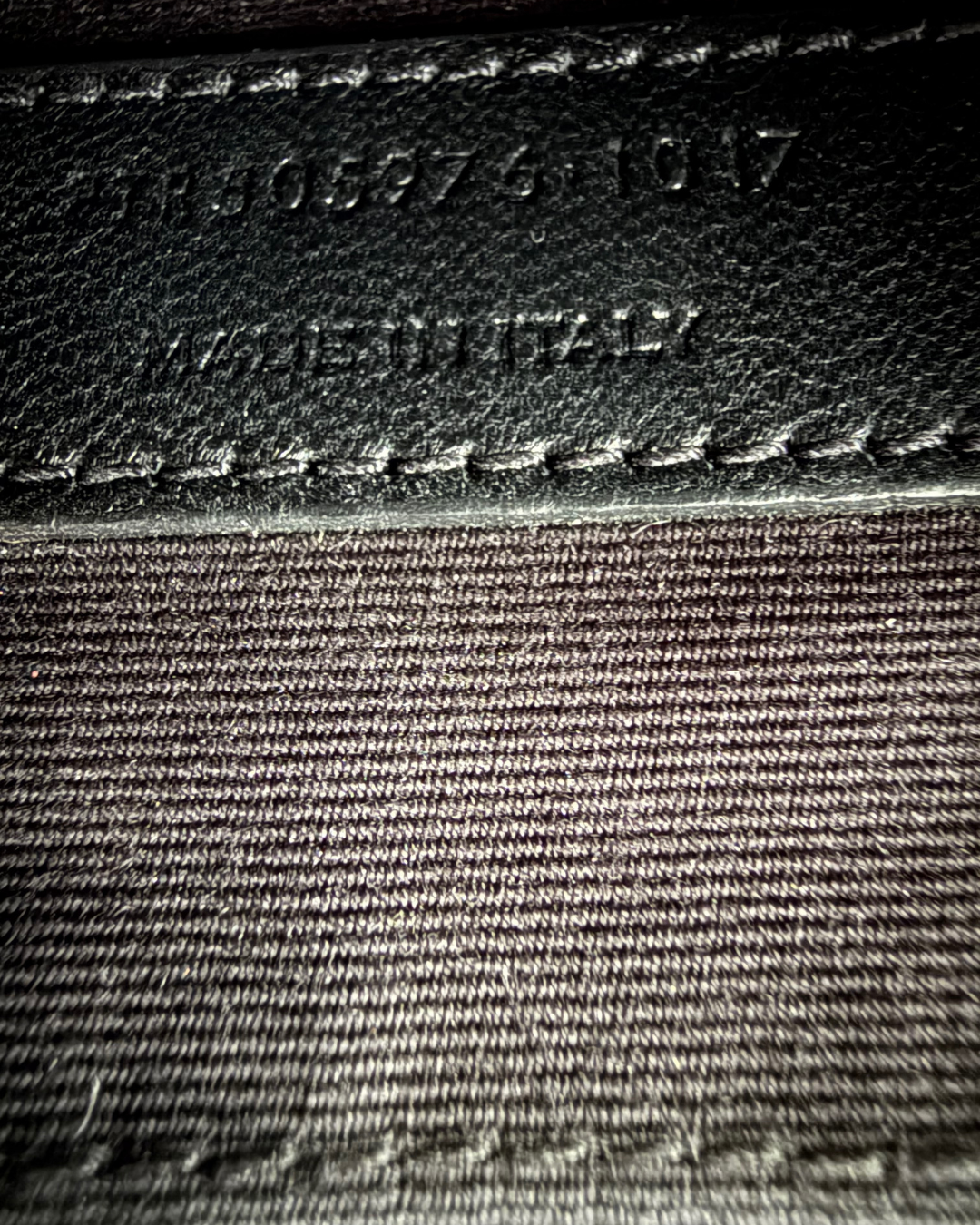 Features: Adjustable strap, zip closure, embossed YSL logo, leather tassel